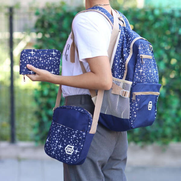 Nodalījumi un acu starpsienas nodrošina jauku lietu izkārtojumu. Nodrošiniet vietu visiem skolas piederumiem ar mugursomu, nelielu maku un somu skolas piederumiem.