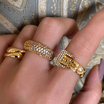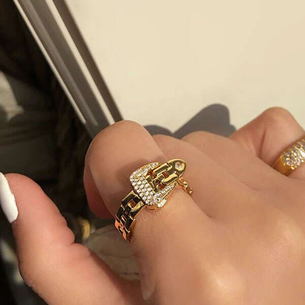 Oriģinālais sprādzes dizains liks jums izcelties no pūļa. Jostas formas gredzens padarīs jūs unikālu un autentisku.