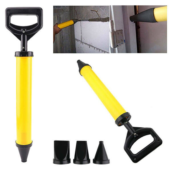 Viegli aizpilda dažāda izmēra plaisas sienās. Vienkārši piepildiet inžektoru ar cementa masu un viegli iespiediet to spraugā.