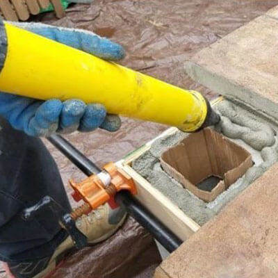 tas ir tikpat vienkārši kā 1, 2, 3. Vienkārši piepildiet to ar cementa masu un sāciet veidot savienojumus vai pildīt caurumus.