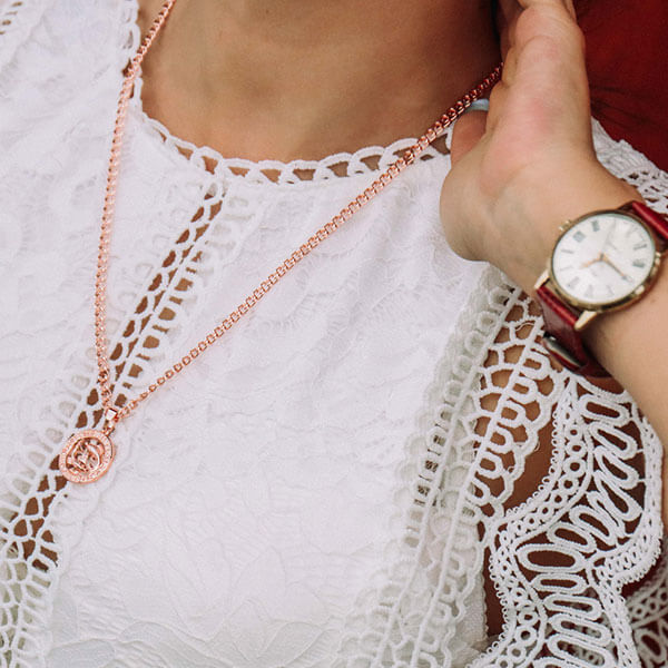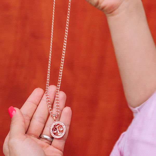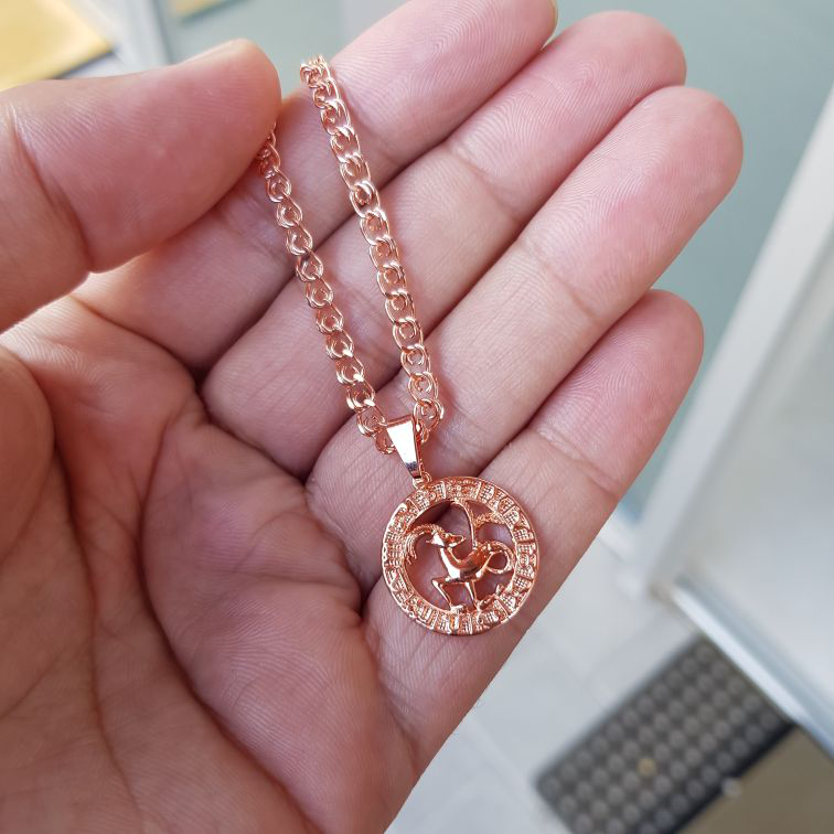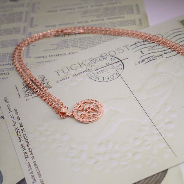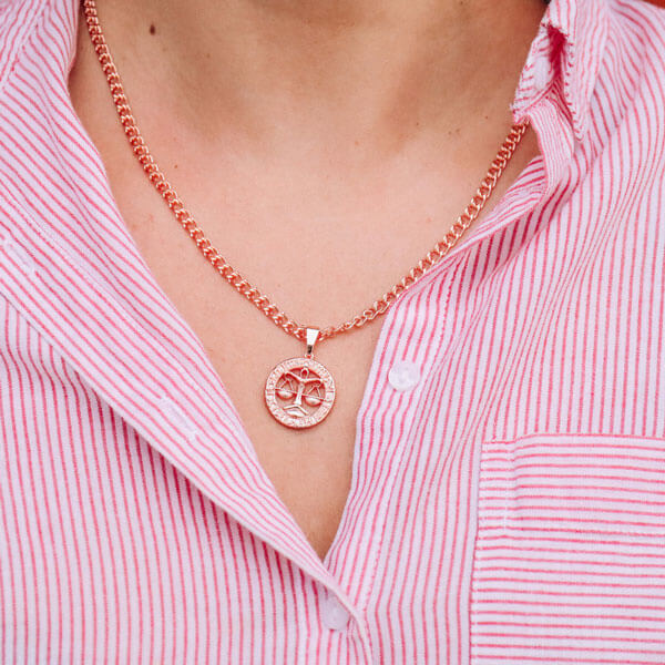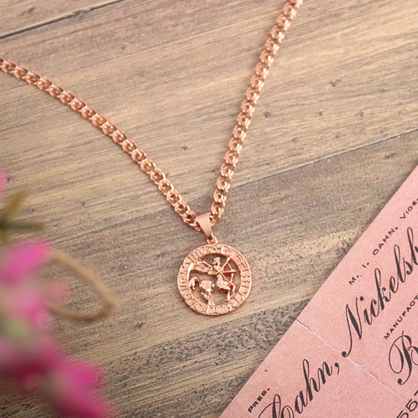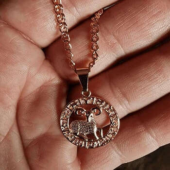 Pārsteidzoša ķēde un apaļais kulons ar skaisti izstrādātu jūsu astroloģiskās zīmes simbolu lieliski rotā jūsu kaklu.